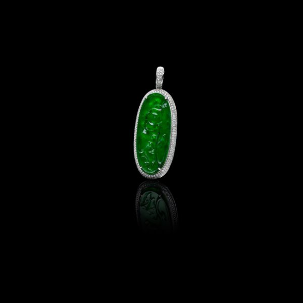 玻璃种满绿莲年有馀翡翠吊坠 – 帝皇綠翡翠